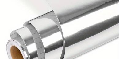 6 MIL PERMANENT, SILVER MIRROR CHROME VINYL w/120gsm Double PE Coated Liner