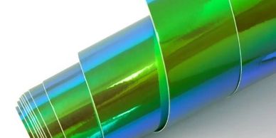 6 MIL GREEN HOLOGRAPHIC VINYL WITH PERMANENT ADHESIVE